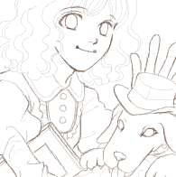 下描きをなぞってこんな感じに主線を入れ終わりました。 |